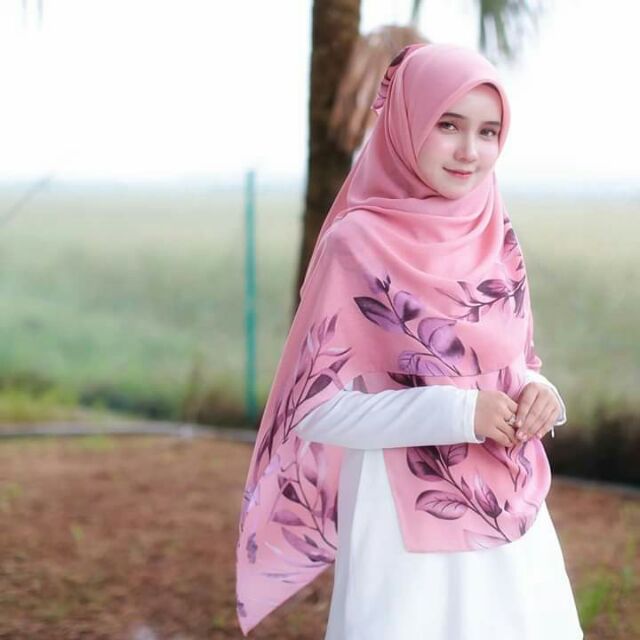 Hot Item Bawal Cotton Dedaun Hijab Galeria